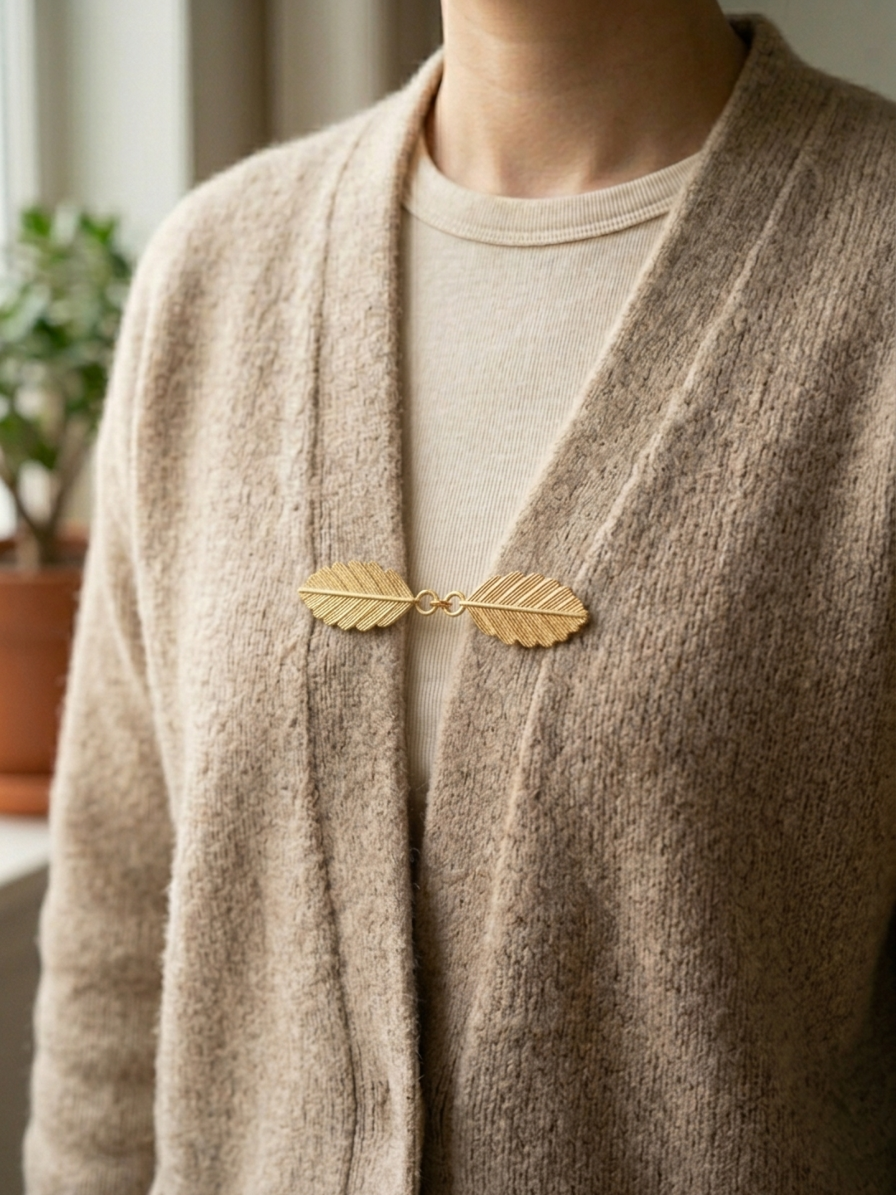 Chain Gold Leaf Cardigan Cinch Clips