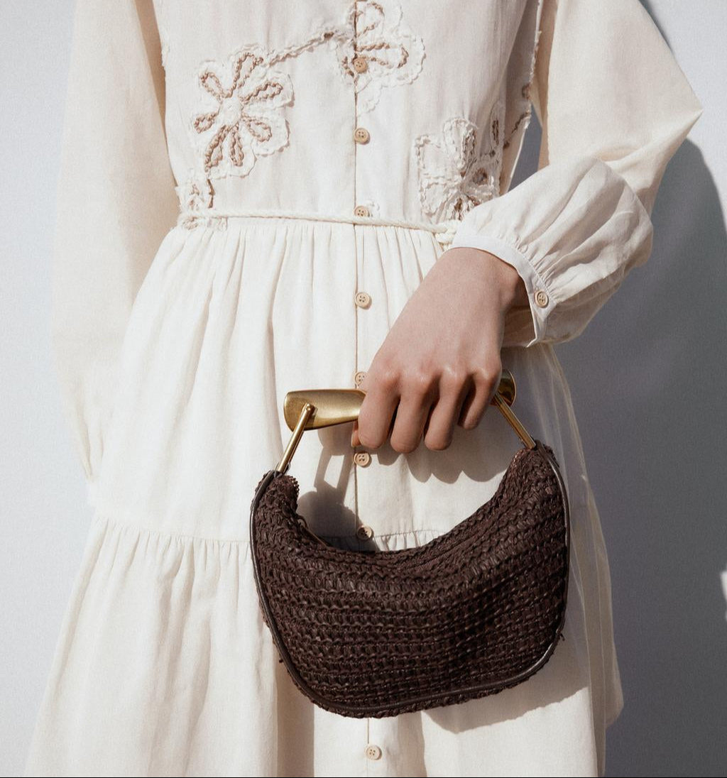 Mini braided bag with a braided top. Metallic gold top handle and double adjustable and detachable crossbody strap. Lining and inside pocket. Zip closure.Height x Length x Width: 12 x 19.5 x 8 cm. / 4.7 x 7.6 x 3.1"OUTER SHELL STRAP 100% zamak MAIN MATERIAL 100% paper ADDITIONAL MATER...